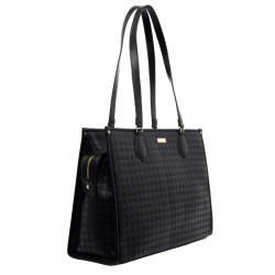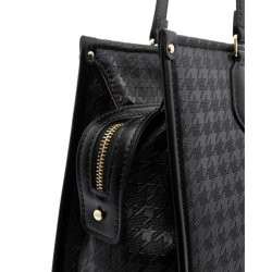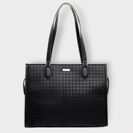 Τσάντα ώμου μαύρη με ανάγλυφο μοτίβο pied de poule.