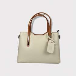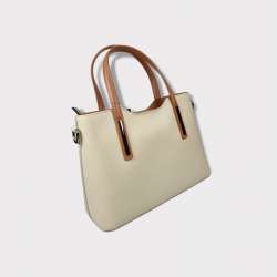 Γυναικεία δερμάτινη τσάντα χειρός μπεζ με ταμπά λεπτομέρειες